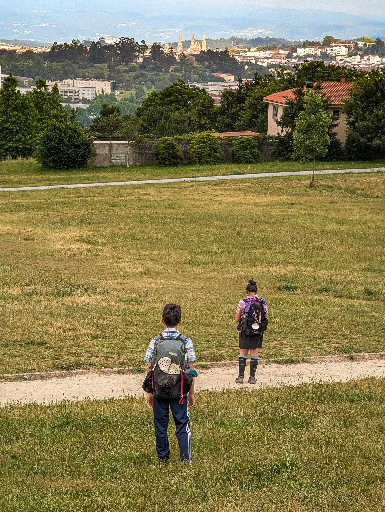 An easy morning walk into Santiago. Having plenty of time, we went to the true summit of Monte do Gozo (“Mount Joy”). This is the first time pilgrims are able to see the Cathedral of Santiago de Compostela’s iconic towers off in the distance. Only 5 km more.