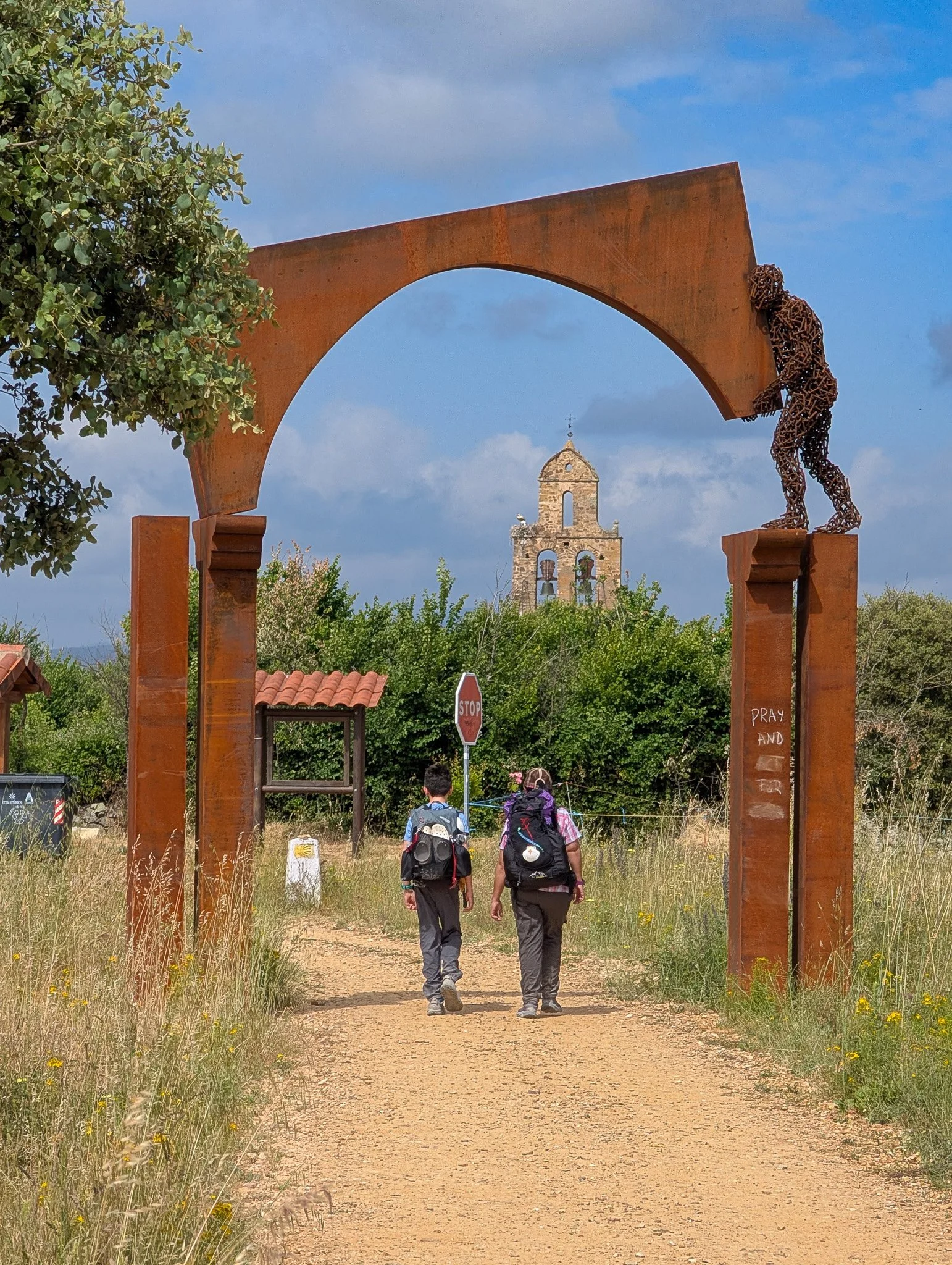 Approaching Cruz de Ferro we heard chatter closing in behind us. As we settled into a bench a very large group of Spanish middle schoolers arrived. They were carrying small daypacks, and had a lot of energy. A pair of 15-passenger sag wagons waited across the street. The kids swarmed the hill, took photos, updated their social media, and then disappeared westward, all within the span of 10 minutes. Silence resumed.