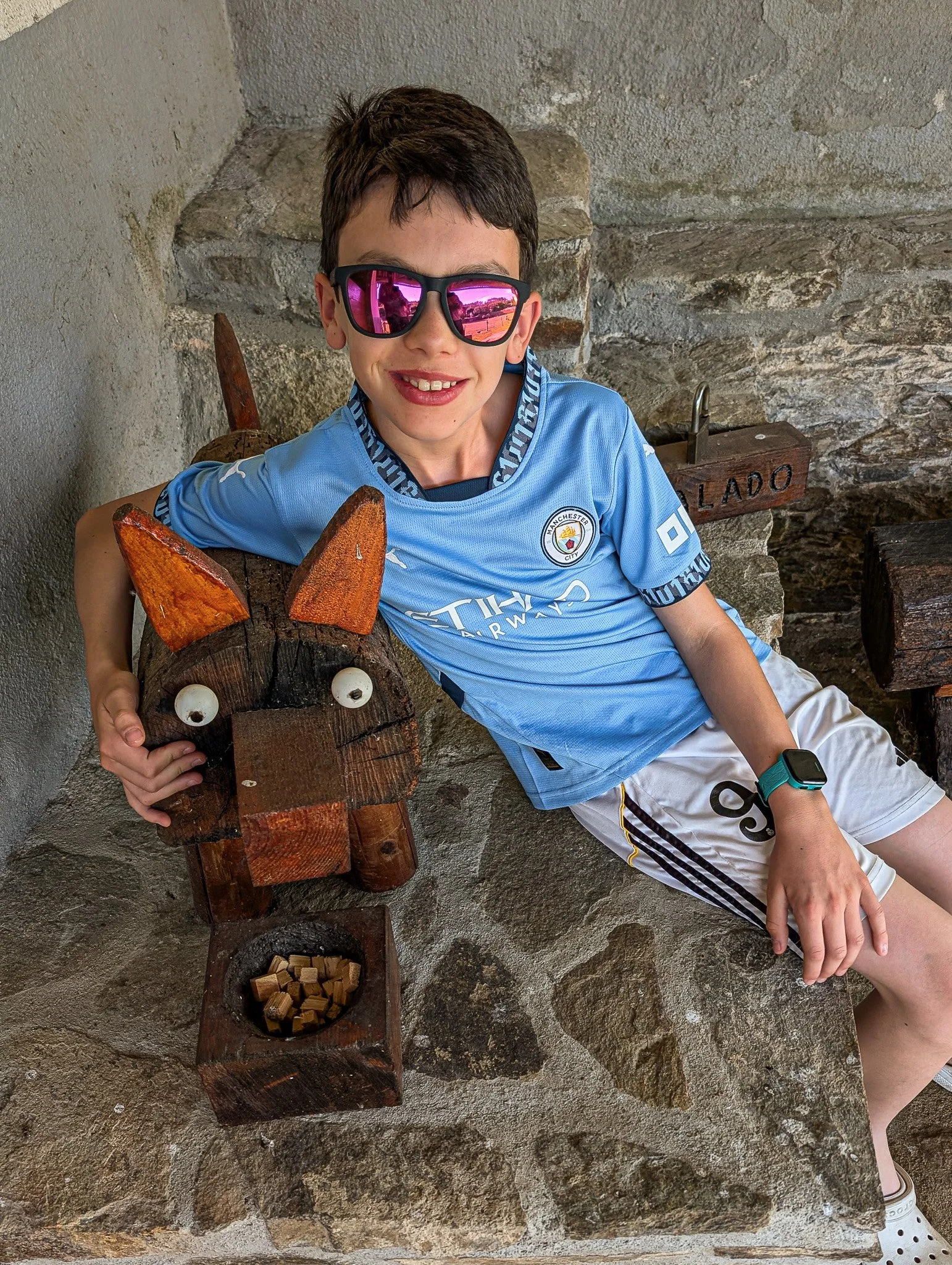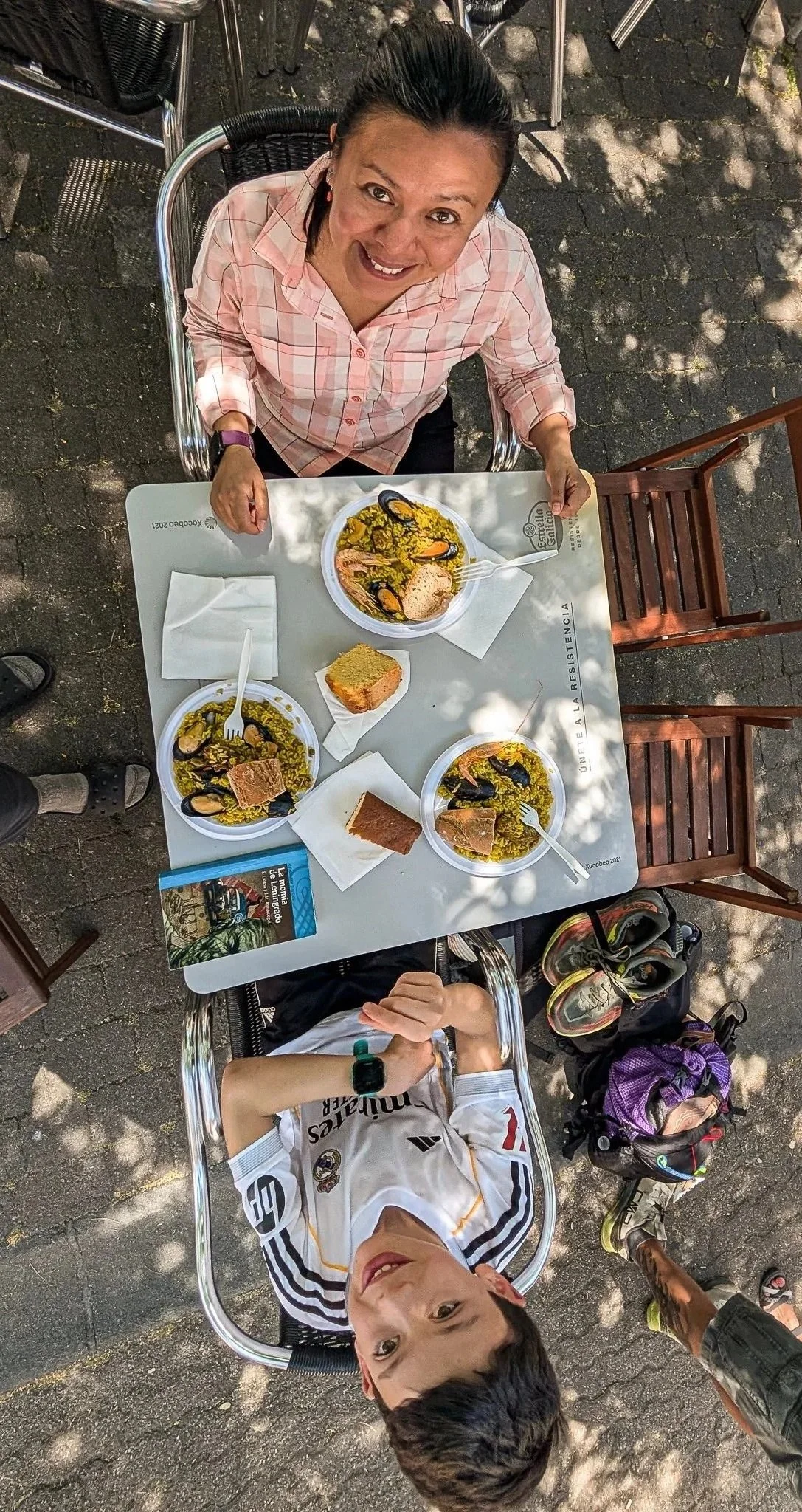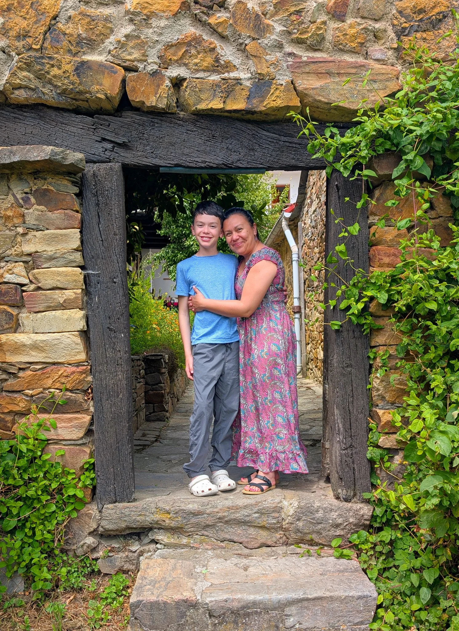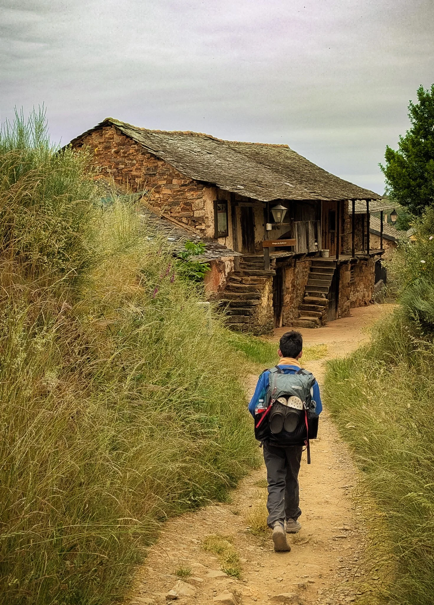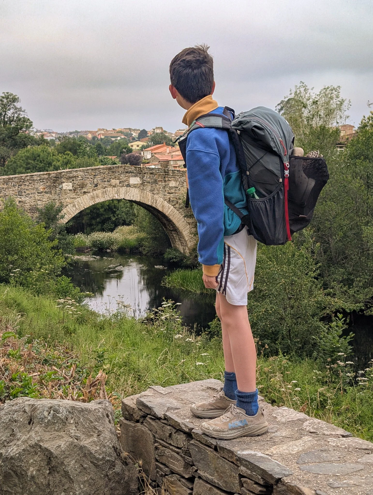 We crossed the river into Portomarín in time for lunch. Weary pilgrims struggling up the steep staircase from the river watched in disbelief as Matthew ran laps on it. There was just no wearing him out.