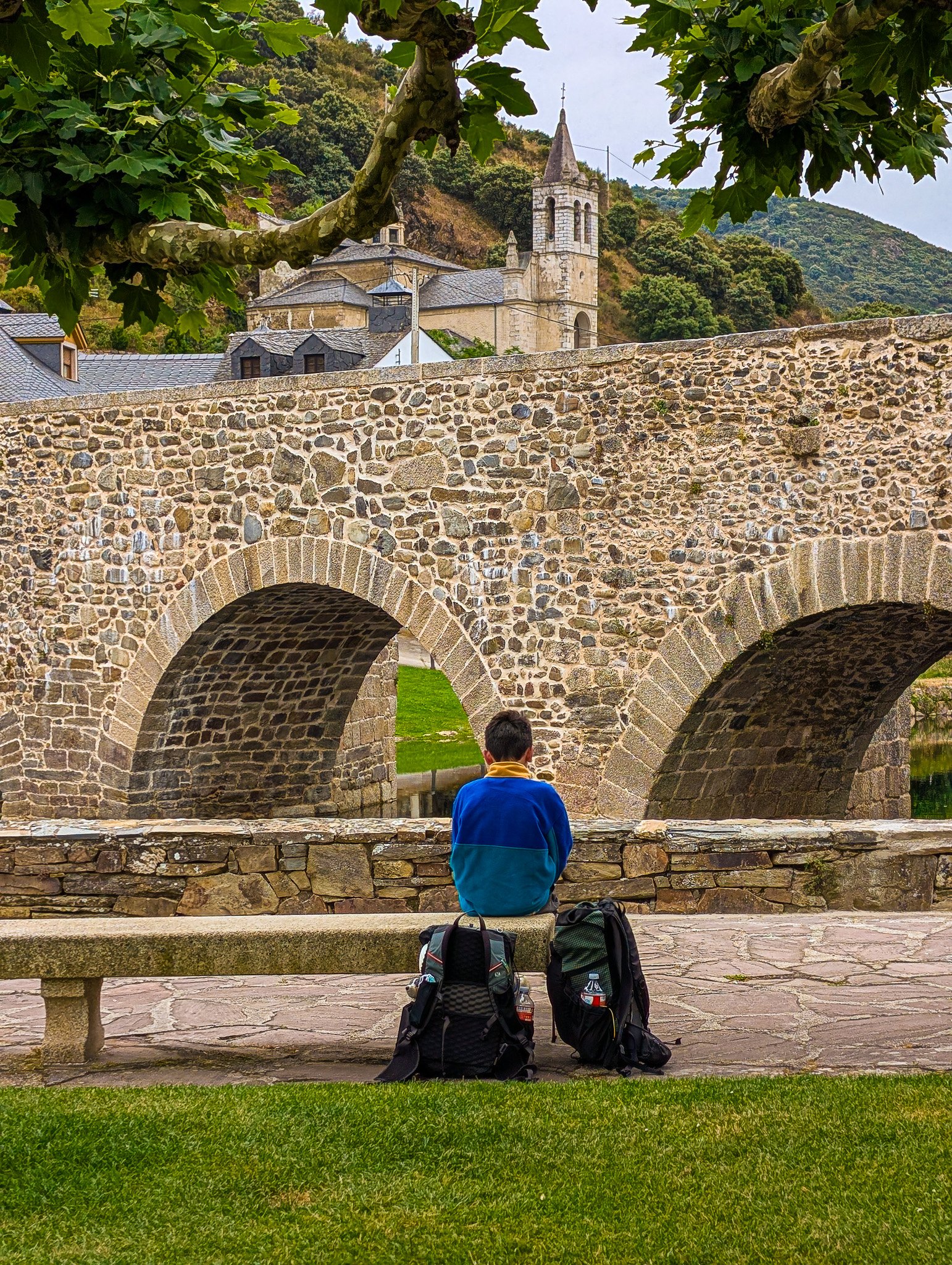 There was hardly a soul up there, likely due to the ridiculously steep trail. We relaxed with some scenic ridge walking before the trail dumped us back down an even steeper slope straight to Trabadelo. We wandered the streets of Trabadelo in the afternoon sun looking for a frozen treat, which we soon located. The detour was more effort than we had bargained for, but it did get us around road walking along the A-6.