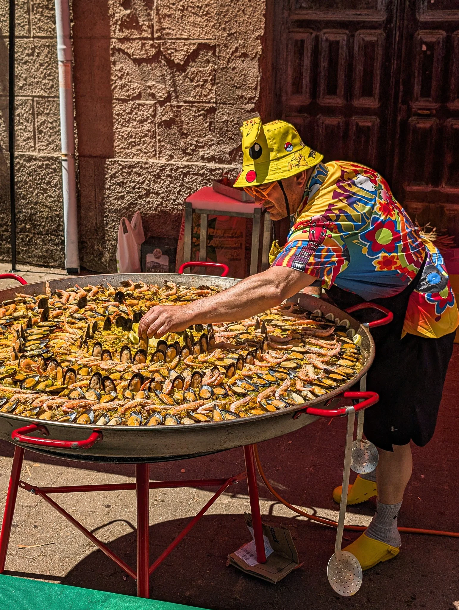 Inside, there were vendors and locals conducting a brisk business. In one area a lady had a large pot of pulpo going over a burner. Our search was over. Dad wasn’t keen on the idea of eating octopus, but in the end hunger won out. We each had a wooden plate of paprika-dusted pulpo straight from the pot, accompanied by fresh bread and a bottle of red wine, all for a few euros per person. It remains one of my favorite meals of all time.