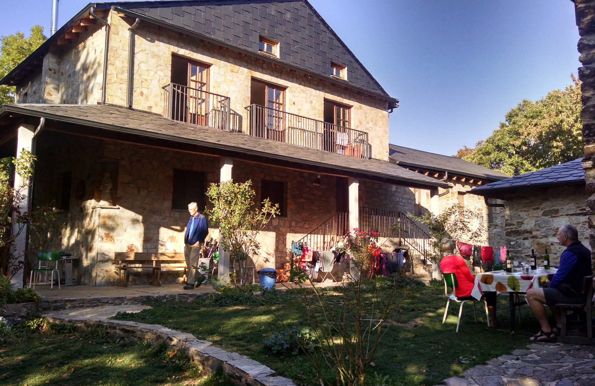Lesly soon warmed her up, as she does. The place managed to preserve the spirit of the Camino, no small feat in the final 100km where things can often feel Disneyfied. Especially nice were the laundry and hot showers, a distinct advantage over what 11th century pilgrims had access to.