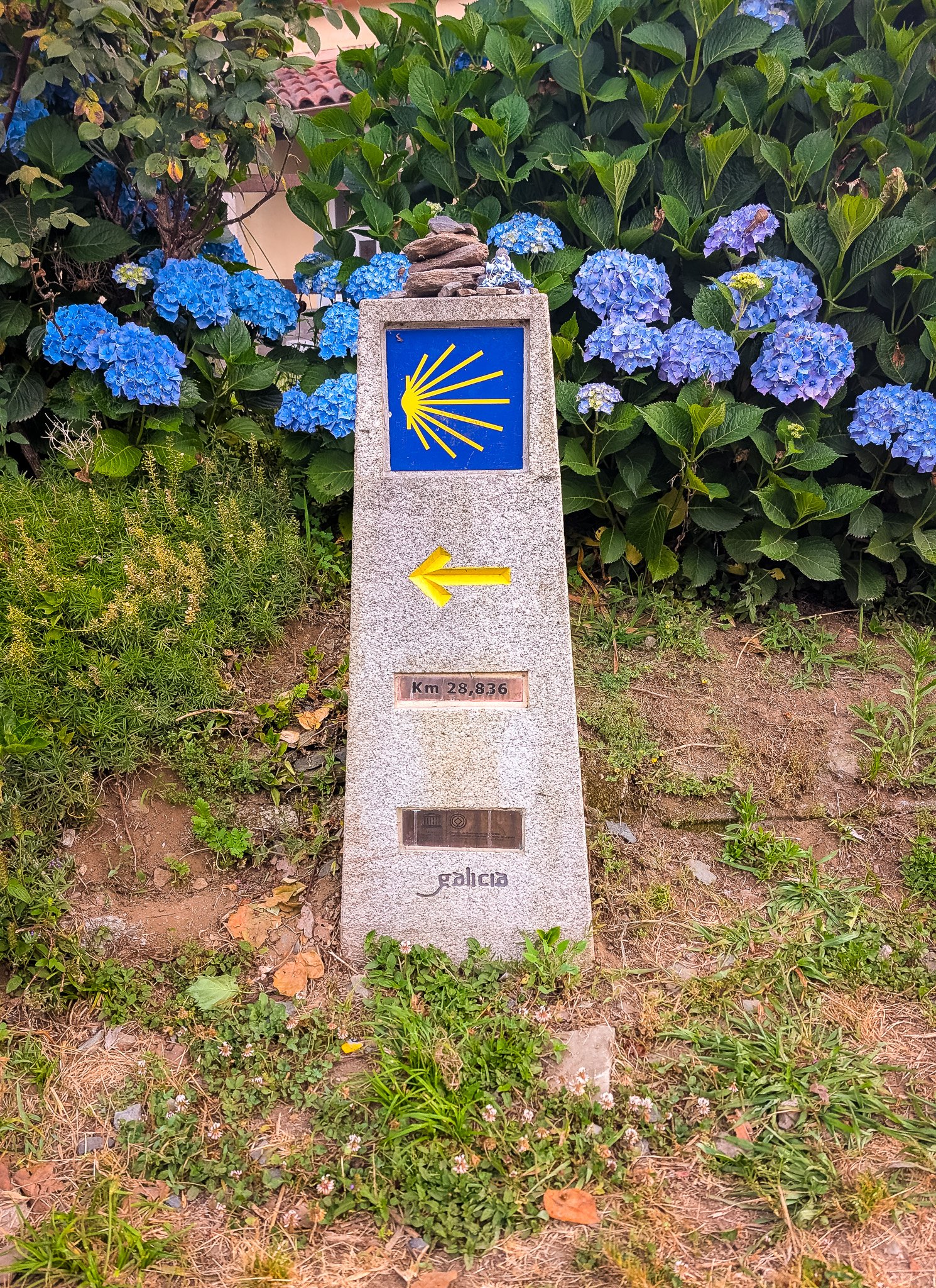 We passed lots of horreos, elevated Galician granaries which reminded us of the Valais region of Switzerland. More tractors. The fog burned off and the morning warmed up. Somehow it never felt busy. In San Xulián we checked in to Albergue O Abrigadoiro, a small place with a friendly feel and good food. Highly recommended.