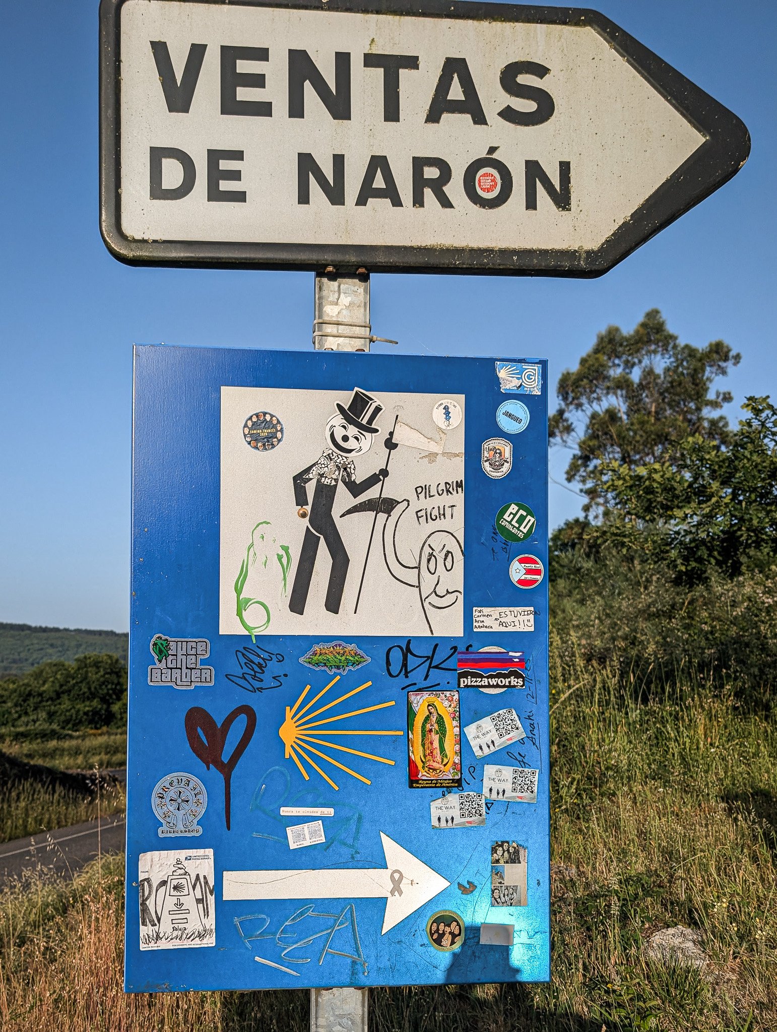 The Camino doglegged around the end of the SCQ runway, which felt like pointless busy work. Nevertheless, it was still really peaceful considering how close we were to the big city. The town of Lavacolla was off the main stage itinerary, so it wasn’t overwhelmed. Lavacolla’s name comes from its historical status as a site for ritual washing. After a long and arduous journey, pilgrims would bathe and wash their clothes in the nearby river, preparing for their final approach to Santiago. We had a similar plan.